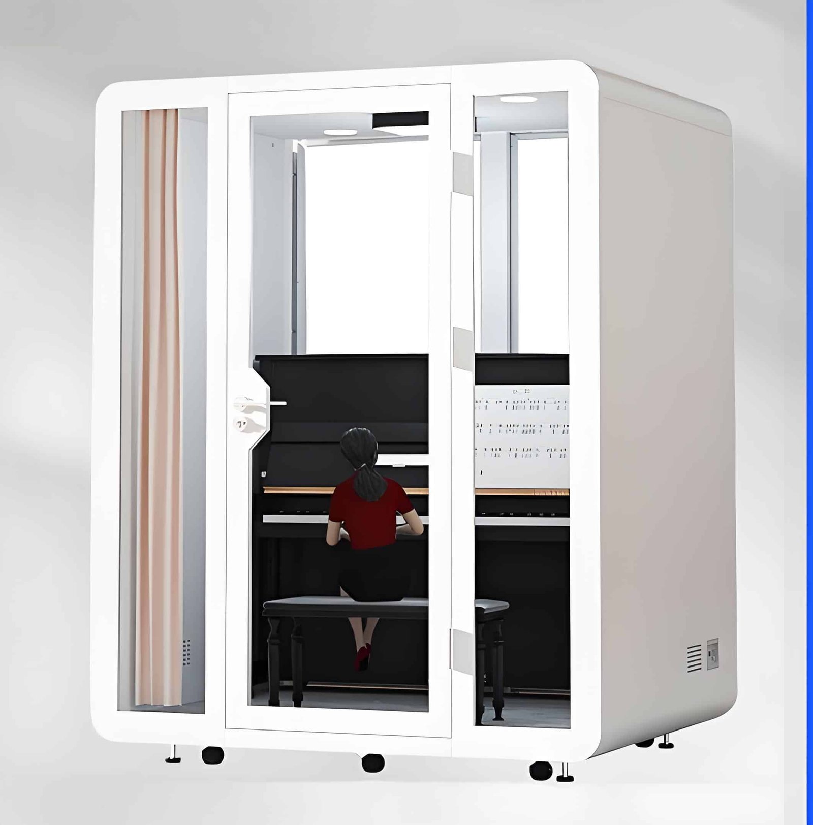 - Studios: Provide soundproof areas for creative work with our soundproof and acoustic booths, ensuring a distraction-free environment for recording, practice, and production.