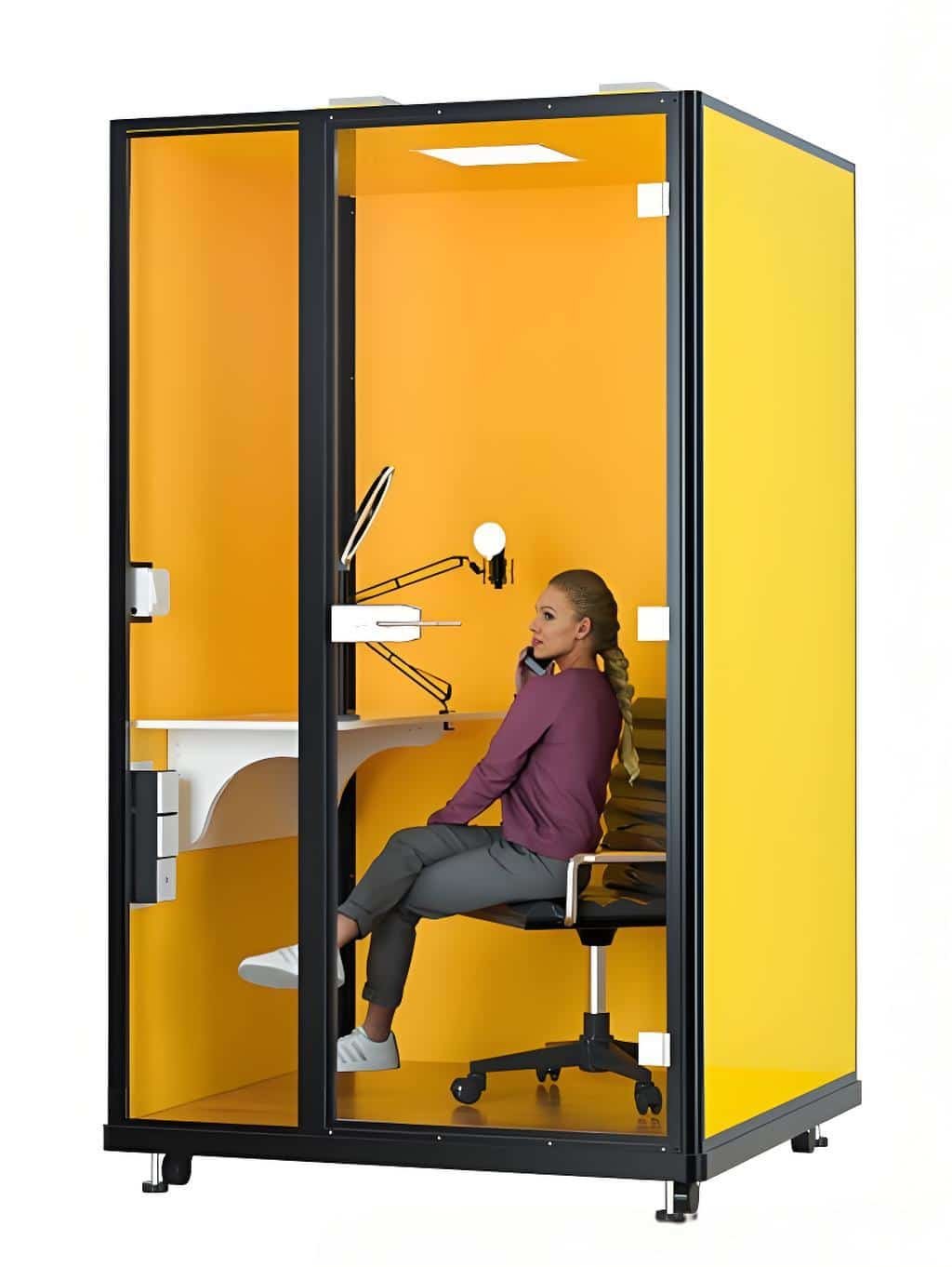 - Open-plan offices: Create private workspaces for focused tasks with our soundproof and acoustic booths, boosting employee productivity and reducing distractions.