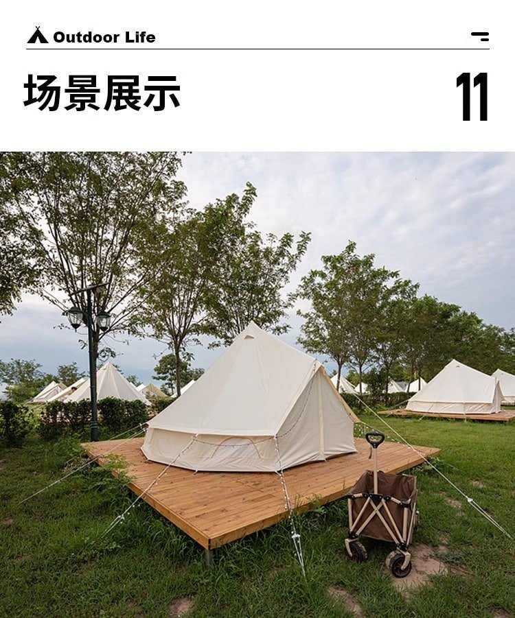 Discover the Yurt-Bell Tent, a fusion of traditional yurt design and the iconic bell tent silhouette, crafted for the modern outdoor enthusiast. This hybrid shelter provides a spacious, comfortable, and stylish retreat perfect for camping, festivals, or backyard relaxation.