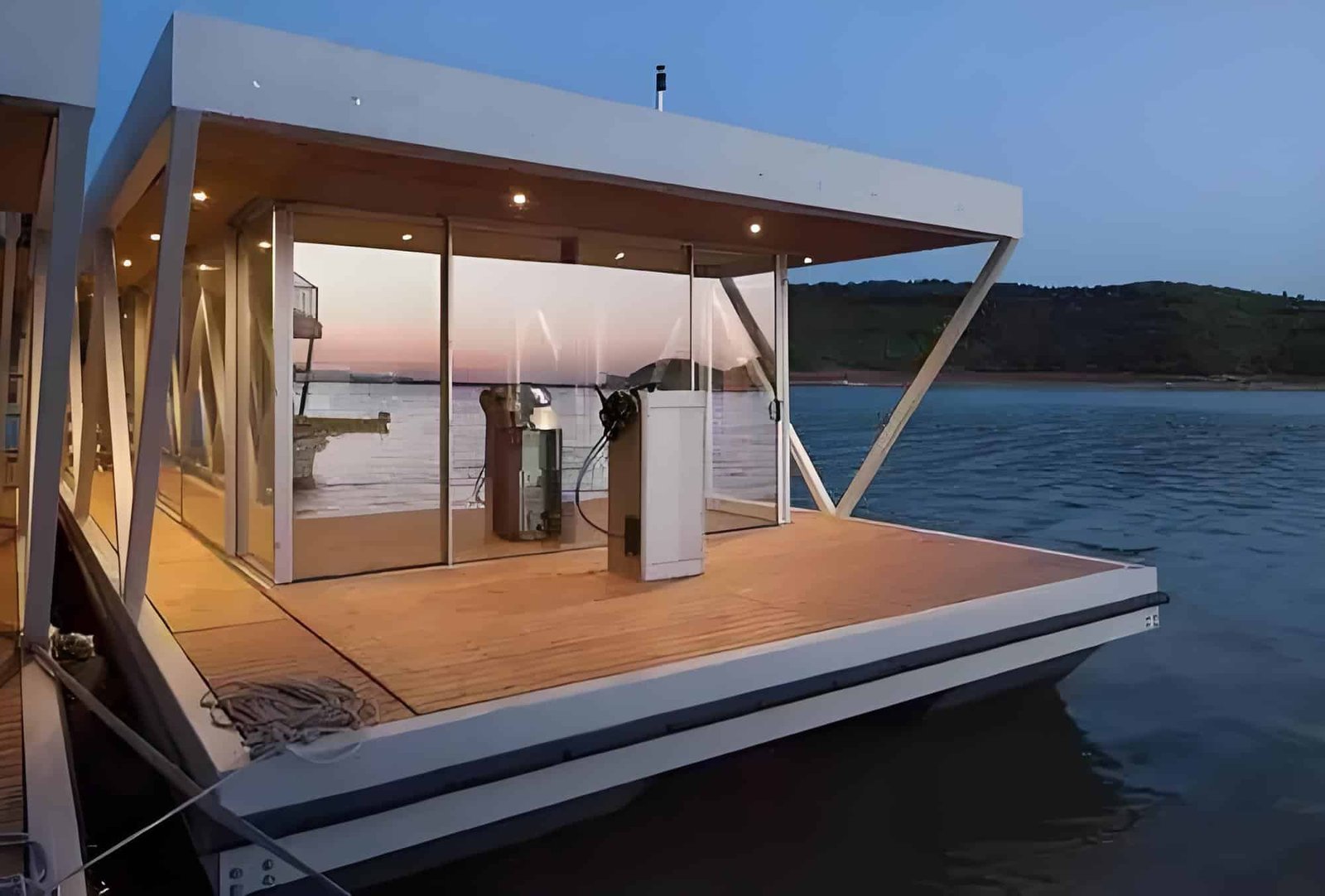 Descubra o auge do conforto e da inovação com as nossas soluções de barcos-casa ancorados de última geração