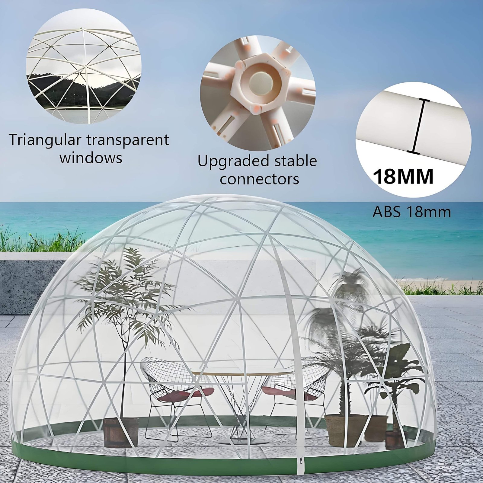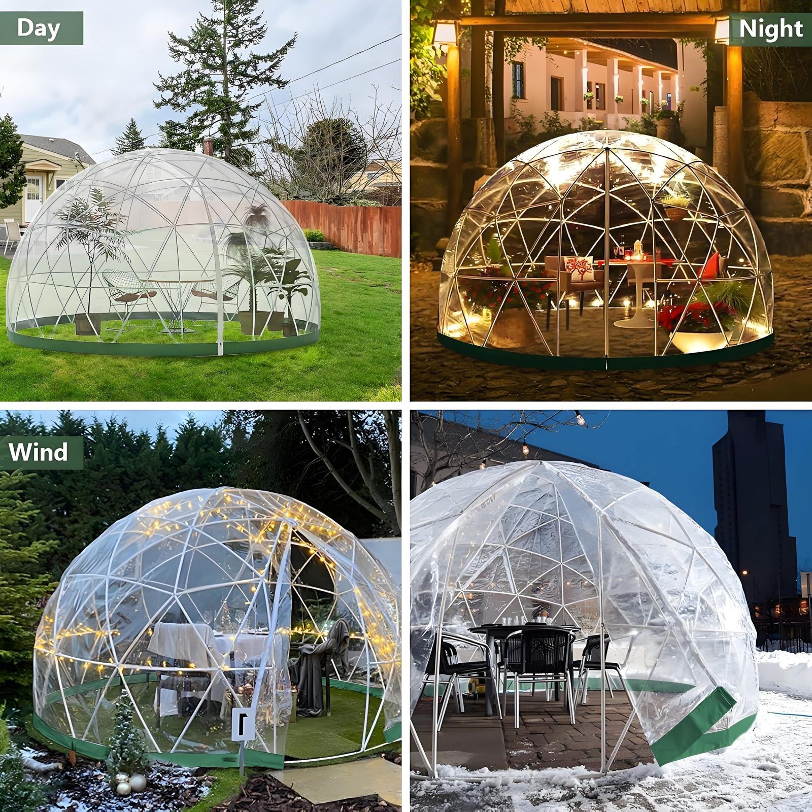 - Weather-Ready: Geodesic design, wind-resistant up to 31 mph (50 km/h), snow load 90 lbs (40.8 kgs).